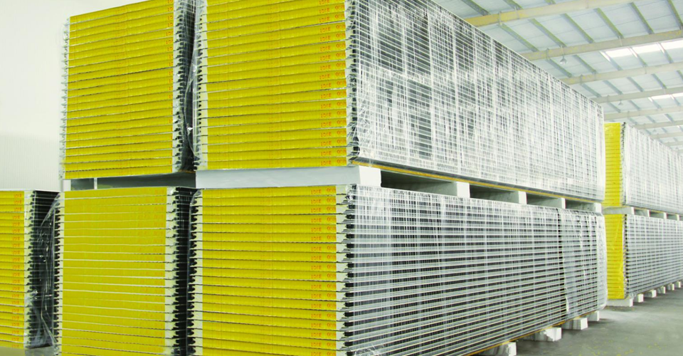 聚氨酯巖棉板安裝方便,快捷,隔熱,防火,環(huán)保,外形美觀,單位重量輕,被廣泛用于工廠,倉庫,辦公樓等項目。  該板由內(nèi),外鋼板和芯材組成。外鋼板通常為0.6厚,內(nèi)鋼板通常為0.4或0.5厚。外鋼板的表面形式一般分為三種:純平,小波紋和壓紋效果(純平和小波紋 好,許多業(yè)主喜歡使用純平板);芯材通常使用巖棉,玻璃棉或聚氨酯材料,是通過機械配合制成的。  聚氨酯巖棉板的安裝過程:  物料到達和卸載→確定起始板的高度和軸線→安裝溢流板和貨盤→安裝夾心板→安裝垂直金屬